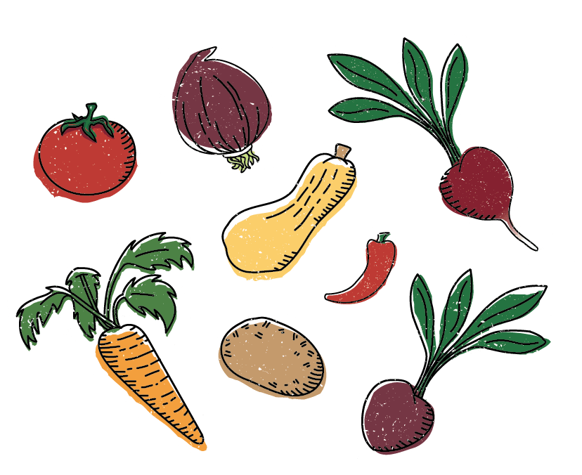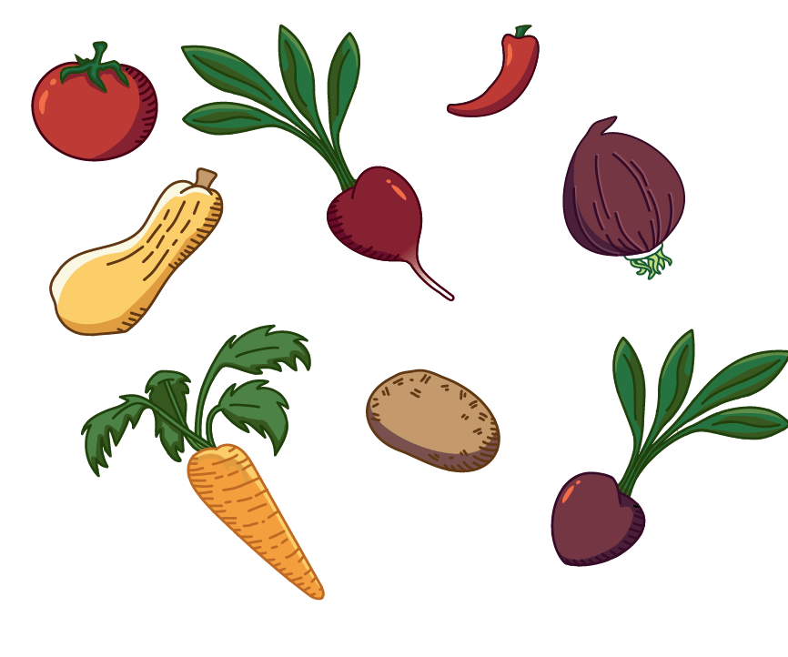 Slightly muted/desaturated tones to avoid overwhelming community members and maintain a calm, welcoming environment. Client found a future iteration of this design successful because of its whimsical visual appeal and use of the vegetable illustration.