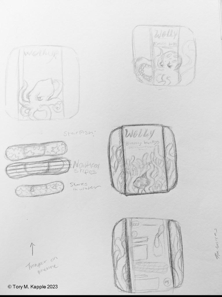 Inspired by the visual language of cartoons, I came up with a few sketches that invoked a lighthearted warm feeling (Seen Below).