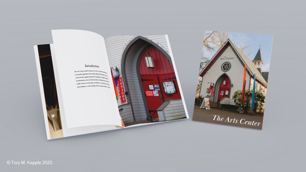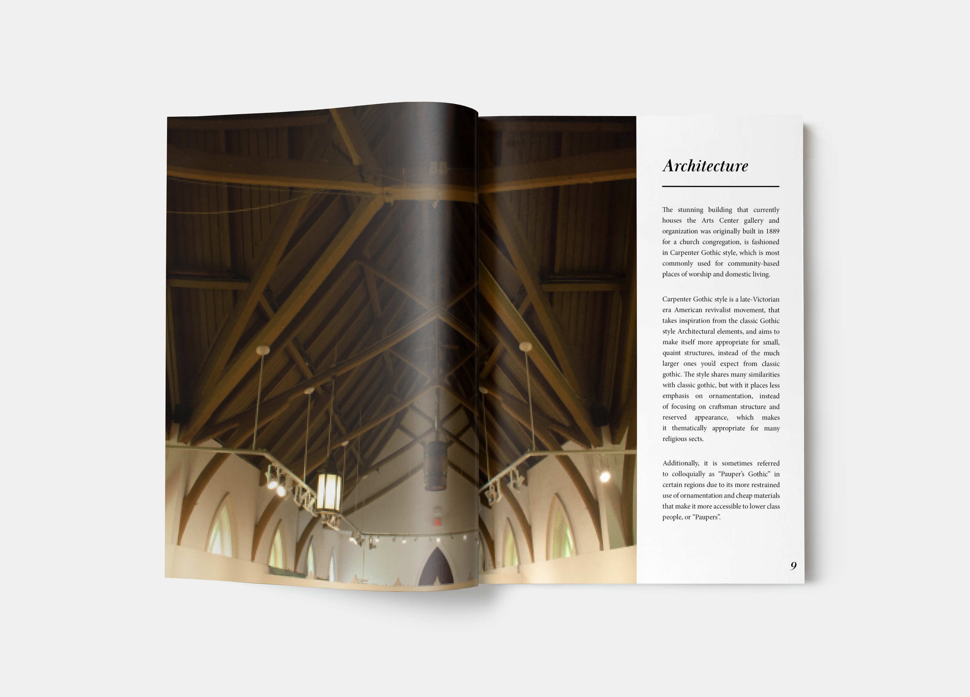 A zine-style booklet celebrating local historic landmark, the Arts Center.