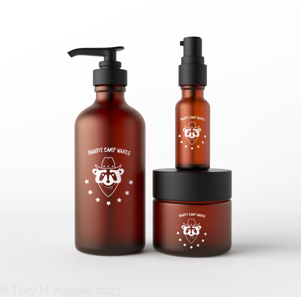 Playing on the nickname “trash bandit” given to racoons due to their iconic “mask” markings, the logo represents the western element of the brand name. Racoons are a current popculture icon beloved by todays younger generations.