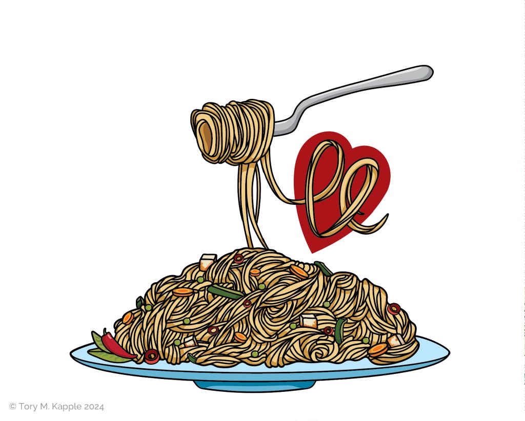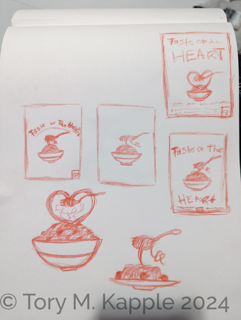 Client came in with the idea of a heart incorporated into a dish of food somehow, playing on the “heart” in the event’s title.